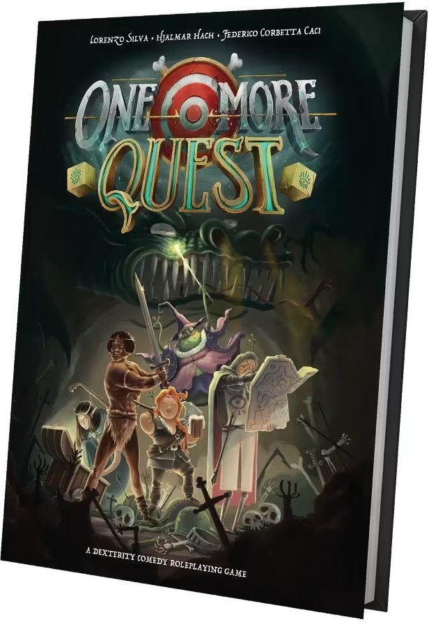 - 1x 326 pages, with full-color art throughout, featuring all the rules needed to play One More Quest.