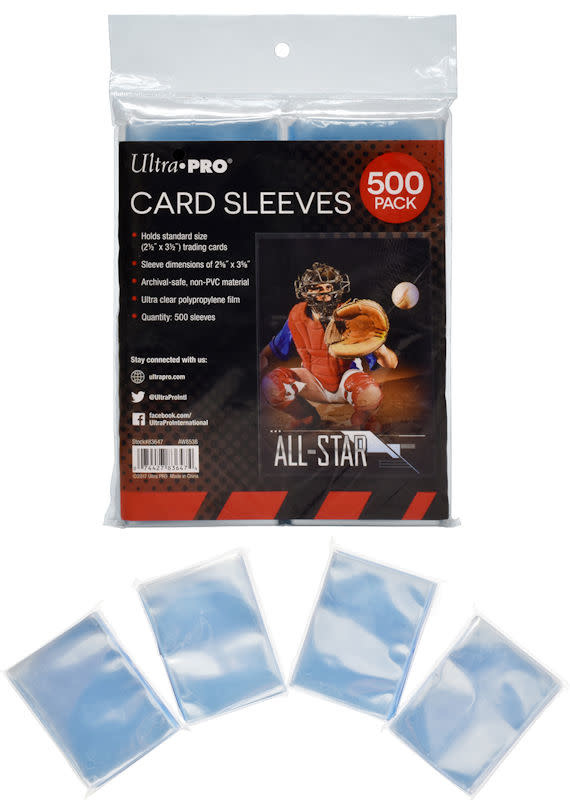Made with non-PVC, ultra clear polypropylene film, these sleeves are a must for any trading card collector looking to preserve the value of their trading cards. Sized to fit standard cards measuring 2.5" x 3.5". Each pack comes with 4 inner packs of 125 sleeves per pack, totaling 500 sleeve per pack.